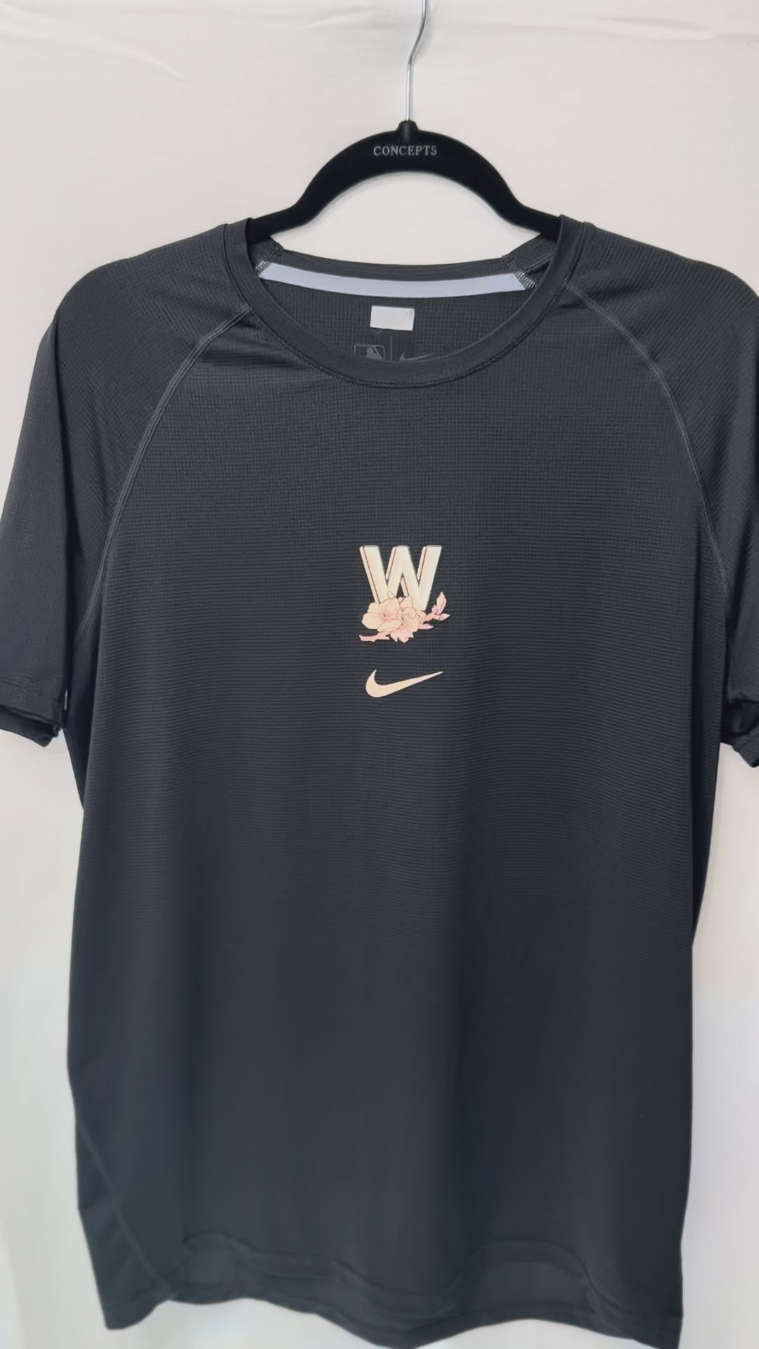 Color/Design: Inspired by D.C.’s cherry blossoms — Black and with pink blossom graphics and Nationals logo]